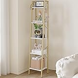 【One Rack, Many Uses】Prop up plants on the balcony, put books in the home office, display trinkets in the living room, hold cooking utensils in the kitchen. The additional 2 hooks can be used to hang keys, bags etc..This 5-tier storage ladder shelf fits all your purposes