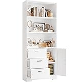 Versatile Storage Solution: Featuring 3 open tier shelves, a cabinet, and 3 drawers, the IRONCK white bookcase provides a flexible storage solution for your home or office. Dimensions: 29.5"L x 11.8"W x 71"H.