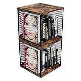 【Wooden & Metal】The cube storage organizer is made of sturdy 2 wood boards and 2 visualized metal mesh. Product size: 11.81''L x 11.81''W x 11.81''H - One in the package