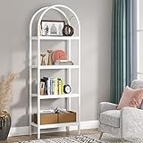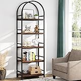 [Industrial Stylish Design]: The stylish top curved design adds a delicate aesthetic to the entire bookshelf. Clean line and wood grain texture make this industrial etagere bookcase suit for anywhere