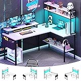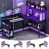【With Power Outlets & Large Storage Space】Our computer desk is equipped with 3 power outlets & 2 USB charging ports to provide power for up to 5 devices simultaneously. Easily charge your computer, smart phone and gaming gear. l shaped gaming desk with 4 tiers open shelves, Extra storage bag and headphone hook, which offer enough space to store your daily items.