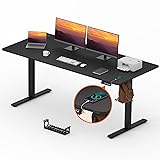 Thoughtful Design: This standing desk features a clever design that incorporates two spliced panels, effectively reducing the weight burden during installation. Furthermore, our office desk is equipped with two hooks on each side, and there is a cable hole on the desktop for convenient everyday use.