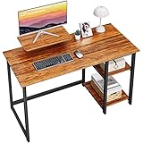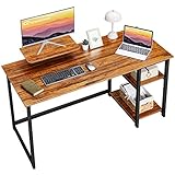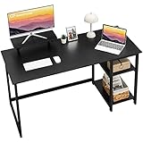 REVERSIBLE STORAGE SHELVES: Computer desk with 2-tier storage shelves can be installed on left or right side according to your space or use habits.Open shelves can hold your books,storage box etc.You can remove the middle shelf to get more space for large computer tower.