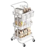 SPACIOUS STORAGE CAPACITY: The utility cart with wheels provides large storage space while saving you floor space to optimiz the space utilization as much as possible; great organization and storage solution for a small kitchen. The rolling storage cart is also equipped with 3 hanging cups, 4 hooks which lets you get rid of clutter