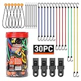Premium ball bungees made with high-grade black plastic and a UV treated bungee cord that outlasts the competition. 45-piece set comes with 3 lengths of rubber bands, and different colors can help you quickly identify each size. Includes 15 x 6 inch, 15 x 9 inch, and 15 x 11 inch ball bungee cords. These ball bungee cords are made of high quality rubber, long lasting and fray resistant. Perfect for canopies, tarps, shades, sleeping bags, securing household items, also for tent, canopy, wall pipe, fishing rods, screen, canopy shelter etc It is simple to use and can be reused. Easy to use, install, remove or reposition, Whether you're preparing for a camping trip, fixed tent or attaching a shelf, you can use our products to make you complete them faster and better.