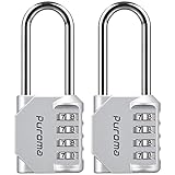 Puroma 4 Digit Locker Combination Lock is strong and built to keep your own belongings better and set your mind at rest while doing your sports or job.A special design of the combo side window provides you a clear view while setting your code. It can be resettable and 10,000 combination codes formed by 4 digit numbers make it safe for daily use.Specifications:Shackle size: 1/4''Material: Steel and Zinc AlloyUnit Dimensions: 4.6 x 1.73 x 0.87 inchesHow to set your own code?1. Make sure codes are set to default (0-0-0-0). Pull up the shackle and turn it to the code setting gap.2. Push the shackle down until the tiny pin is fully inside the gap. Hold it there and turn the shackle counterclockwise to the code line.3. Scroll the numbers to set your own combination code, making sure the numbers are completely in the windows.4. Turn the shackle clockwise until it pops up. Remember your new combination.Note:To avoid damaging the lock, it's NOT recommended to turn the shackle over the code line.Please make sure the numbers are completely in the window when setting a new combination. Please remember your new combination code you have set.Package Content:2 * Combination locks (Black)