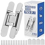 Size : The hidden door hinges is 6x2.5x1 inch, suitable for the door with thickness>35mm and Width<850mm, Two hinges can support up to 88lb and provide a 180-degree opening angle