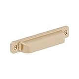 Transitional rectangular cup pull with faux screw embellishments. Please note that the screws included with the products are a standard size of 1 in (25 mm) length, quadrex, pan head. They will fit with most of the popular melamine thicknesses, which range between 5/8 in to 3/4 in (16 mm to 19 mm).