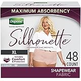Depend Silhouette Adult Incontinence & Postpartum Bladder Leak Underwear for Women, maximum absorbency, size small (26-34" waist), 60 count; now with a new look and improved benefits!