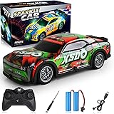 UPGRADE LIGHT UP REMOTE CONTROL CAR: This RC car uses a new and innovative appearance of cool and cute graffiti shell design, charming and cute body with bright flash, easy to attract toddlers, effectively protect the eyes, giving children an unparalleled visual experience. The back of the rc car is designed with decorative wheels to give your child a particularly cool driving experience. Children can enjoy playing with the remote control car and experience the fun of driving it