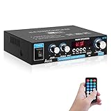 Bluetooth Input & Multipurpose: This home audio power amplifier, with Bluetooth, RCA, AUX, USB/SD input, built-in Bluetooth 5.0 chip, for quick connection to audio input devices such as smartphones, MP3, tablets, TV etc. Bluetooth 5.0 wireless connection saves wiring hassle and ensures excellent sound fidelity,great for home theater system and car speakers. (Notice: the Bluetooth connection within 5m/16.4ft.). RCA input, audio from external devices, such as TV, PC, computers, tablets, notebook
