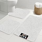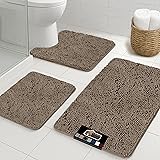 3 PIECE SET FOR OVAL TOILET BASES: 3 piece set includes one 19.5 by 24 inch contour rug for around the oval base of your toilet, one 24 by 17 inch rug, and one 36 by 24 inch rug; we recommend to measure your toilet base before purchase to ensure a perfect fit; see measuring guide in listing images