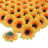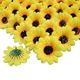 ➜PRODUCT:50 pcs faux sunflower heads with brown center and brighten yellow petals, Artificial sunflowers without stems and leaves.