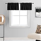 DONREN Blackout valances all for a better life. In our store there is the same color blackout tiers&curtains(30"/45"/54"/63"/72"/84" length) to match with valances. Sold as 2 panels, each measures 42" width, available in 15" length. Each curtain panel have 3" rod pocket slot top with 1" header, universal fit to most of rods. Blackout valances are made of innovative triple-weave polyester fabric .They block 85-99% sun lights and UV rays (Dark color works well) for maximum privacy and undisturbed live. Good quality finishing will withstand years of use. Machine wash in cold water. Use only non-chlorine bleach & warm iron when needed. Tumble dry low.