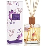 Includes: One fragrance diffuser glass bottle, 6.7 fl oz mixture of essential oils and six pure cotton sticks. Adjust the amount of aroma released by adding or removing the sticks.