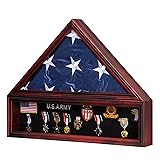 HIGH QUALITY MATERIALS - The burial flag display case are made of solid wood, with a Walnut finish and High Definition Thick Real Glass front. Protect your flag, certificate document and badges from dust, moisture and scratches, make them great for years. Comes with a document holder to protect your valued certificates and personalized documents.