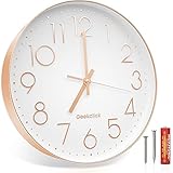 Geekclick Modern Style Wall Clock Not just for telling time, but perfect for adding artful appeal to your wall. Guarantees accurate time and absolutely silent time keeping. Product Specification Color : Rose Gold Frame, Black Background Material : Plastic Frame, Glass Cover, Metal Hands Style : Modern Movement : Quartz(Battery Powered) Diameter : 12 Inch/30 cm. Packing List 1 x Geekclick wall clock 1 x Carbon battery 1 x Cement nail 1 x Screw 1 x Accessory box STURDY PLASTIC FRAME The beautiful high-quality plastic frame ensures longer life. PREMIUM PAINT POINTER The classic pointer is easy to read and dress up any room's decor. CLEAR GLASS Guarantees crystal-clear view and keeps dust away from the dial.