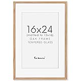 NATURAL SOLID OAK WOOD FRAME - This 18x24 picture frame is made of high-quality 100% solid oak wood, the natural wood grains on this real oak wood picture frame lends it an authentic look. This poster frame comes with 1.2mm ivory mat for visualization purposes, and 18x24 picture frame can be matted to 16x20.