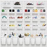 Proper Size: you will receive 4 pieces of pegboard cups in 2 - 2.8 (D) x 4 (H) inches and 4 pieces of pegboard cups in 2.09 - 2.8 (D) x 4.8 (H) inches, 22 pieces of peg board bins in different sizes, namely 4.72 x 5.12 x 2.36 inches (L x W x H), 3.94 x 3.94 x 1.97 inches (L x W x H), 3.54 x 3.15 x 1.97 inches (L x W x H), the diverse size and enough quantity to meet your various needs; Note: the pegboard is not included
