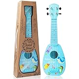 【MINI & SAFE UKULELE TOY 】This kit includes 1×17-inch mini ukulele,1×ukulele strap,1×tutorial,2×extra ukulele strings,4×gliding frets.Made from child-safe ABS plastic,this toddler guitar is safe for young children,ensuring hours of fun without harm