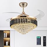 【Dimmable crystal ceiling fan 】This Indoor Modern Ceiling Fan has 3 color changes(Cool-Neutral-Warm). Chandelier fan with retractable blades is dimmable (2700-6000-4500K). You can change the brightness of light from bright to dim.