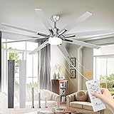 【8 Dual-Sided Blades & Large 72 Inch Ceiling Fan】Our 72 inches ceiling fans with lights are made by corrosion-resistant and durable wooden blade, finished with wooden color and silver color. Ceiling fan includes 4, 8, and 12inches down rods, making it a versatile choice for both low and high ceilings (12-32 inches high). 2 Colors suit any home style like farmhouse/industrial/modern. Ideal for living room, garage, barn, kitchen or outdoor covered patio porch.