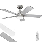Practical meets decorative - 52-inch ceiling fan with light and 5 double-sided fan blades. Acrylic cover with flicker-free LED light source for a softer light. The simple and modern design style makes your room more stylish and upscale. It is perfect for any indoor and covered dining room, kitchen, living room, bedroom and more.