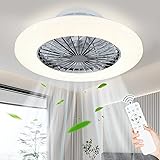 DLLT LED Remote Ceiling Fan with Light Kit-40W Modern Dimmable Ceiling Fan Lighting, 7 Invisible Blades Ceiling Fans, 23 Inch Ceiling Lighting Fixture Flush Mount, 3 Color Changeable, 3 Files, Timing