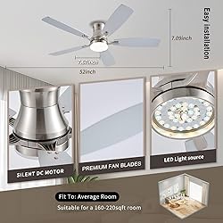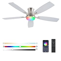 【Ceiling Fan with Remote/APP Control】: Control the flush mount ceiling fan via the remote control or the "fan lamp pro" app on your phone. Easily adjust light brightness and color, 6-speed settings, 1/2/4H timers and the fan and light separately ON/OFF, allowing you to easily adjust settings from anywhere in the room or outdoor places for optimal comfort.(Tips: After fixed, the remote control can be used as a wall switch)