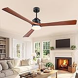 🏡60" Wood Ceiling Fan Application: The indoor/outdoor ceiling fan with light is composed of 3 walnut wood blades, with a matte black finish, which is designed for rooms with low ceilings. This modern ceiling fan has a wide range application for indoor, bedrooms, living room, covered patios and porch.