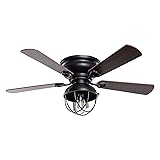 LIGHTING & CEILING FANS: This low profile ceiling fan with light features a beautiful vintage design that adds a touch of elegance and nostalgia to any room. The antique-inspired finish and intricate detailing on the fan blades and light fixture create a timeless look that complements both traditional and modern decor styles.