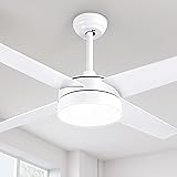 MODERN LED CEILING FAN: Certified by ETL, the ceiling fan with light made of metal motor housing and 5 white wooden fan blades is minimalist and stylish. Acrylic cover with flicker-free LED light source can make the light more soft. Suitable for your bedroom, dining room, living room, kitchen, hallway and other outdoor indoor space