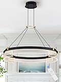 MODERN LED CHANDELIER: This 5-ring black led chandelier is based on an energy-saving concept and is made of high-quality aluminum, metal, and acrylic materials. The circular ring of the led chandelier cleverly combines with the elegant design, making it perfect for your home.