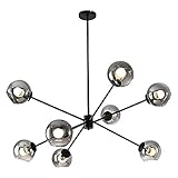 Description: Name: 6-Lights Sputnik Chandelier Style: Modern/ Nordic/ Contemporary Material: Metal & Glass Color: Black& Smoke Gray Width: 37.4”(95cm) Height: 13.8”(35cm) Globe Diameter: 5.9”(15cm) Extension Rod: 7.9”+11.8”(20+30cm) Canopy Size: 4.7”(12cm) Light Source: E26 Type of Bulb: incandescent, LED, CFL and halogen bulbs Special Feature: Adjustable Height Specific Uses: Indoor Voltage: 110-250V for Worldwide Wattage: Max 60 watts Recommended Area: 20-30m² Package Listed: 1* 6-Lights Sputnik Chandelier 1* Accessories Kit 1* Customer Manual Warm Tips: 1. For a longer service life, please install and use it in a dry environment. 2. Do not touch the light bulb when it is working well. 3. Keep flammable materials away from the lamp. 4. Before replacing the light bulb, cut off the electricity supply and allow the bulb to cool.