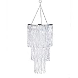 3 Tiers of Sparkling Iridescent Faceted Beads.Diamond cut chandelier measures 10.25" diameter by 30" tall with the 7" hanging chain.