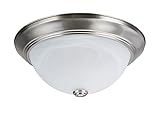 Aspen Creative is dedicated to offering a wide assortment of attractive and well-priced portable lamps, kitchen pendants, vanity wall fixtures, outdoor lighting fixtures, lamp shades, and lamp accessories. We have in-house designers that follow current trends and develop cool new products to meet those trends.Aspen Creative offers a 2 light flush mount ceiling light fixture with a Transitional design in a Dark Bronze finish. It includes a White Alabaster Glass Diffuser. The fixture dimensions are 11" diameter x 4 1/2" high. This flush mount uses 2 medium base light bulbs, 60 watt max (not included). Dimmable with standard wall dimmer (not included) and is UL listed for indoor, dry location. Applications - living room, bedroom, hall / foyer, family room and recreation room