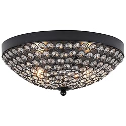Elegant Design:The flush mount crystal chandelier features black finished high quality metal bowl shade inlaid with stunning crystal beads.Very pretty when lit and also pretty when turned off.The small chandelier creates a wonderful light through the exquisite crystal shade,adding much glam and personality to your space.