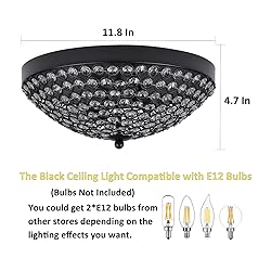 Bulb Requirement:The black crystal ceiling light uses 2 x E12 max 60 watt bulbs and gives off amazing light,compatible with LED,CEL,incandescent bulbs.It's dimmable if equipped with a dimmer switch and LED bulbs(Not Included Dimmer Switch and Bulb).You can choose different style bulbs and color temperatures to create different atmospheres.