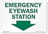 SmartSign (Pack of 4) 5 x7 inch “Emergency Eyewash Station” Sticker Labels with Down Arrow, 5 mil Laminated Polyester with SuperStick Adhesive, Green and White