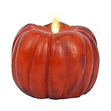 Highlights Luminara's patented Real Flame-Effect Moving Flame technology. Crafted from unscented 100% real wax, this pumpkin candle measures 5" in width and 4.5" in height.
