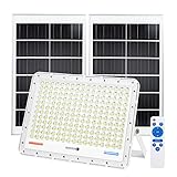 ✅Super Bright - High quality 200W 20000 Lumens 6500k LED Solar Flood Light can illuminate an area of more than 3150 sq ft² , like as a sun.Large capacity battery makes the lamp continue to illuminate for 10-12 hours.