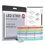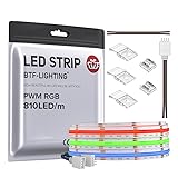 【Cuttable and Linkable】BTF-LIGHTING FCOB RGB LED Strip is soft and flexible.The Spots to solder can be cut.4 PIN connector on two ends, one is female the other one is male.It also support end to end connect in series.10mm width.IP30 Non-waterproof.Indoor use only.
