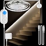 SUPER BRIGHT: LED strip lights are super bright with 300pcs warm white 3000K LED beads. The max luminous flux is as high as 2000lm, which is suitable for using as stair lighting indoor or night light for stairway, double bed, corridor, living room or garage, etc.