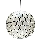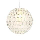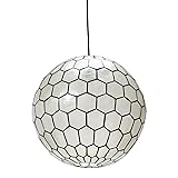 This Capiz Honeycomb Chandelier is handcrafted by skilled artisans in the Philippines. It has an antique gold metal frame with Capiz seashells featuring a beautiful honeycomb pattern detail. This lamp effortlessly elevates any space. Perfect for dining rooms, kitchen islands, or hallways. Each piece is one of a kind, as there are natural variations in the shell.