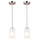 White Frosted Glass Shade Design: This hanging ceiling light fixture combines brushed nickel finish metal fittings and white frosted cylinder glass lampshades, provide plenty of illumination. Perfect for bedroom, living room, dining room, coffee, kitchen, hallway, bar club, loft, and any living areas