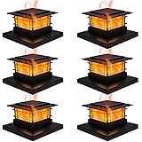 Dynaming 8 Pack White Shell Solar Flame Post Lights Outdoor, Solar Powered Fence Post Cap Lights These solar flame post lights is NOT electricity needed. When fully charged, the light lasts for 8 hours. The solar panel supports long-term operations. A safe alternative to the real flame effect- 72 pcs high brightness SMD LEDs, when night comes, it lights up and the LED flame light leaping, which will bring you a beautiful scenery. Add a 360 degree viewing angle illuminate charming to your garden, decorate your fence, deck, porch or yard. Very easy to install and provide a calming atmosphere at night. Our solar light post caps can be placed in the front, backyard, along driveway, walkway, sidewalk, around your patio or porch, adds a modern look for your outdoor lighting. Specification: Material: White Plastic Size: 5.8 x 5.8 x 3.54 Inch LED quality: 72 Pcs Each Waterproof Rate: IP 44 Powered Source: Solar Powered Bulb Type: 1800K Yellow High Brightness SMD LED Battery: 1 x 1000mAh Rechargeable Battery, Each Package include: 8 x Solar Flame Post Lights Notes: 1 . There is a tab on the back of light, please remove it before charging, then the solar panel can get recharged during the day, and lights can turn on automatically at night. 2 . As the charging effect of the solar panel is depended on the sunlight, the LED light time is affected by weather, seasons, places, etc. 3 . Fully charged the solar panel under sunlight for 12 hours at the first time use. 4 . Please cover the solar panel if you want it light up at daylight. 5 . It is WATERPROOF IP44, and can still use during rain and snow, but please avoid soaking in water for a long time. 6 . Please keep the panel clean and put it directly in the sun to get enough solar energy to charge. 7. Make sure there is no strong light source around the solar panel at night.