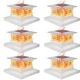 WHITE PLASTIC SHELL DANCING FLAME SOLAR POST LIGHTS: 8 pack modern post cap lights powered by solar, each with 72 pcs yellow SMD LED, they are the perfect decorative outdoor lighting and no electricity required. Solar LED flickering flameless candles lights, add a 360 degree viewing angle illuminate charming to your garden, decorate your fence, deck, porch or yard. Measurement: 5.8 x 5.8 x 3.54 inches