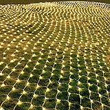 Christmas net lights specification : The outdoor net lights includes 198 count mini led lights, mesh panel size is 9.8ft x 6.6ft, 9.84ft lead wire, 0.33ft tail wire