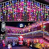 【Upgraded 8 Modes LED Icicle Lights】 The icicle Lights have 8 selections of light pattern: 1.Combination 2.In Waves 3.Sequential 4.Slo-Glo 5.Chasing/Flash 6.Slow Fade 7.Twinkle/Flash 8.Steady On. Different lighting effects are controlled by the button on the plug. These beautiful and vibrant outdoor icicle lights will bring you a lot of festive atmosphere.
