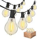 【Energy Efficient and safe】Outdoor string lights sets include bulbs and light strings,with classic LED edison bulbs cast a vintage glow like incandescent filaments,yet use up to 80% less power than incandescent bulbs.With an average lifespan of 30,000 hours, they outlive incandescents too. Patio lights are end-to-end linkable,connect up to18 strands white cord, Easily light up a backyard party or camping wedding.Removable bulbs mean can use the stringer for lighting in other seasons.